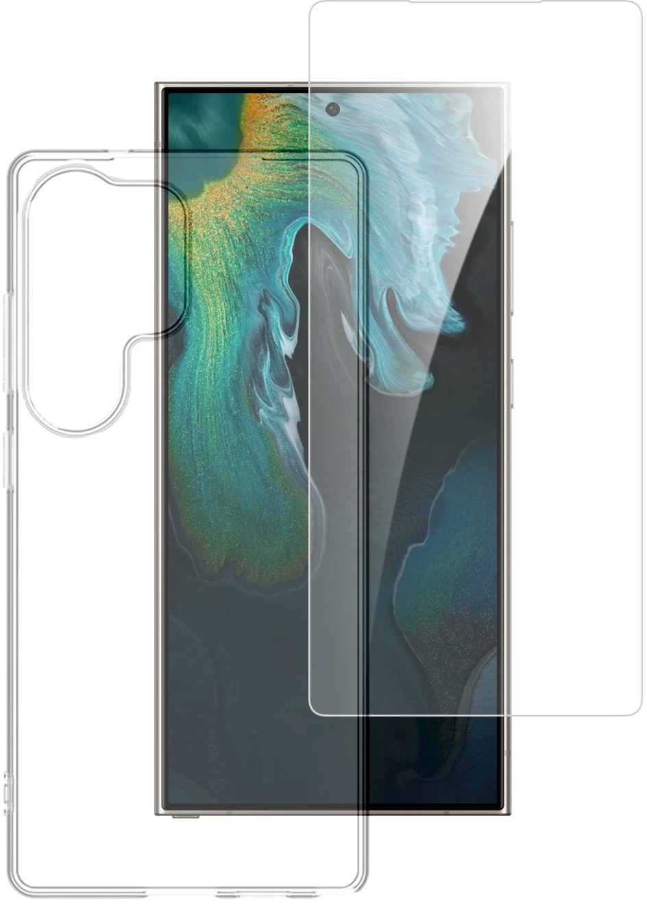 Unser 360° Protection Set bietet dir den idealen Rundumschutz für dein Smartphone: Die transparente Schutzhülle für das Samsung Galaxy S25 Ultra aus robustem Polycarbonat schützt es zuverlässig vor Stößen und Kratzern ohne das Original-Design des Handys zu stören. Das hochwertige 9H-Schutzglas, komplettiert den Schutz indem es den Bildschirm deines Geräts mit der gleichen Sorgfalt schützt.