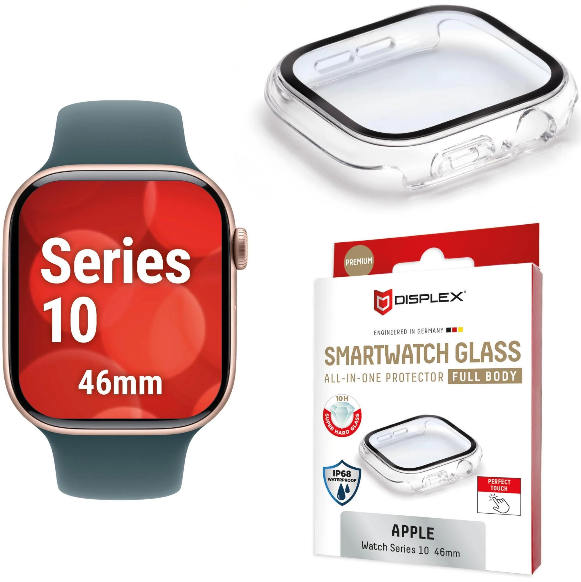 Sichern Sie Ihre Apple Watch mit einer der härtesten verfügbaren Schutzlösungen: Das DISPLEX Premium SMARTWATCH GLASS besteht aus echtem, extrem widerstandsfähigem 10H-Echtglas – härter als herkömmliche Displayschutzfolien – und bietet zuverlässigen Schutz vor Kratzern, Stößen und Displaybruch.