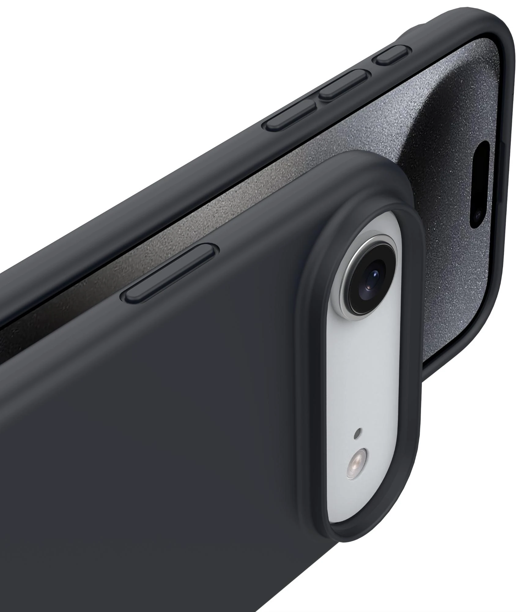 Die Anschlüsse, Knöpfe und Kamera bleiben voll zugänglich.