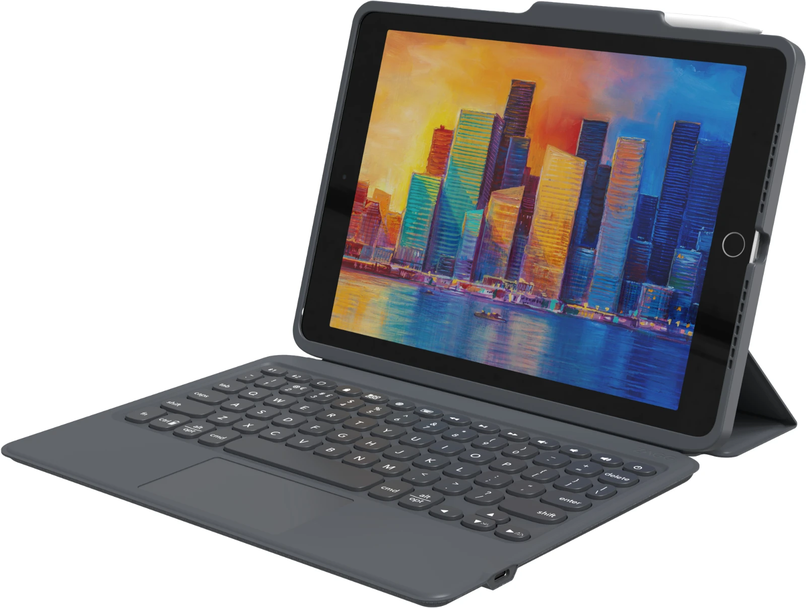 Verwandeln Sie Ihr iPad in eine vielseitige Workstation mit den ZAGG Pro Keys mit Trackpad. Diese Kombination aus kabelloser Tastatur und abnehmbarer Hülle bietet Tippen im Laptop-Stil, ein integriertes Bluetooth Trackpad und robusten Schutz und ist damit ideal für Profis, die viel unterwegs sind.